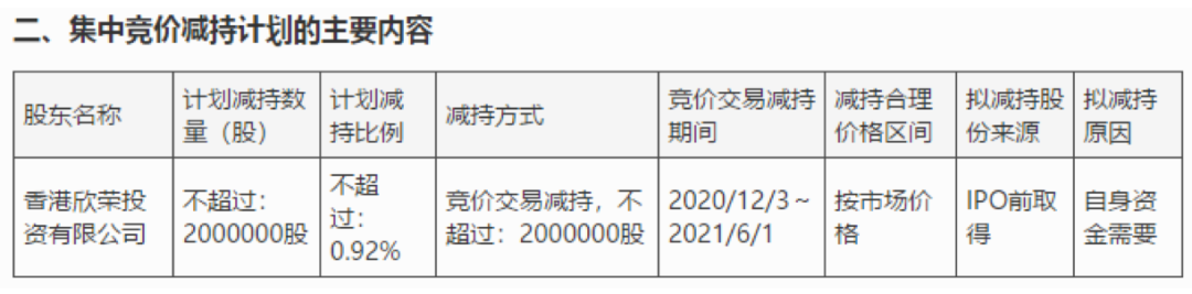 此前,香港欣荣投资有限公司曾于2017年计划减持 246.72万 股公司股份,即不超过公司总股本的1.14%。此后,公司减持了10万股,占公司总股本的0.046%。