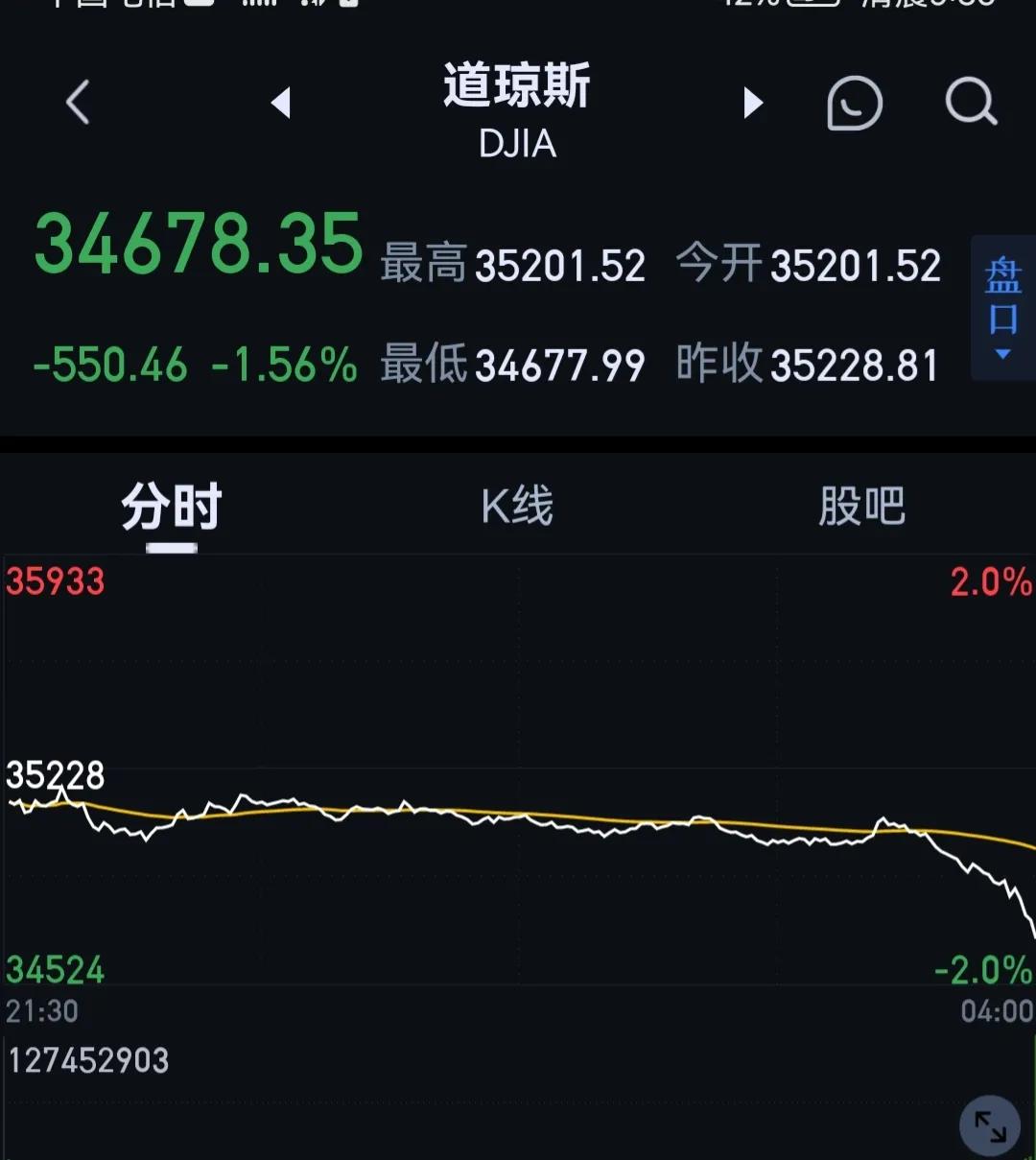 道琼斯指数分时走势图