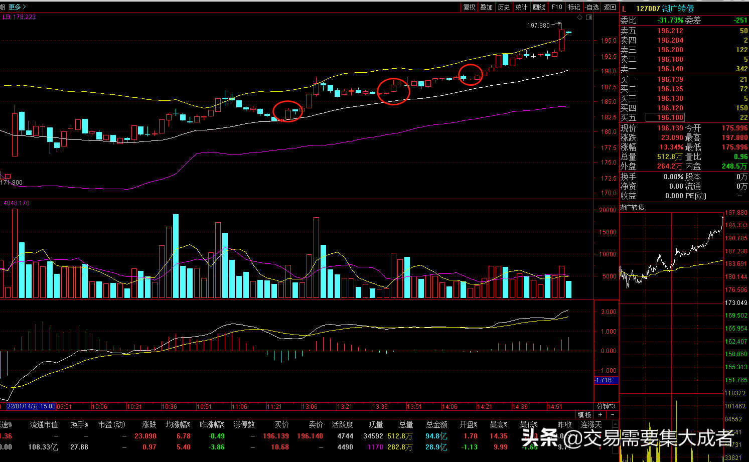 这样就规避掉了湖北广电高位不敢买,更不敢高位重仓买的烦恼,又不用担心今天各种各样奇奇怪怪的幺蛾子。股票位置高不高,还会不会涨,高开卖不卖,低开怎么办这些天天困扰我们的问题,都通过这个日内的可转债交易给化解了。