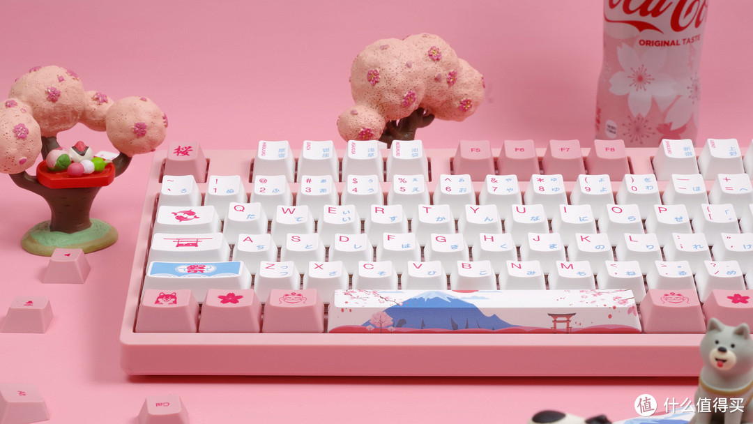 阿米洛樱花主题键盘不用多说啦,樱花主题键盘粉嫩的配色,樱花主题元素的键帽、经典的木纹外壳设计让它从诞生之日后就受到众多萌妹子的喜爱,也算是当下主题键盘大火潮流的始作俑者。不过阿米洛的产品价格还是稍微有些高的,基本都在700元以上,适合预算相当充足的值友考虑。这把樱花主题键盘手感调校扎实,可以满足女孩子日常文字输入和普通游戏需求,最为关键的是粉嫩清新的配色非常适合女孩子用来营造粉色的桌面环境,满足女生装点桌面的爱好。