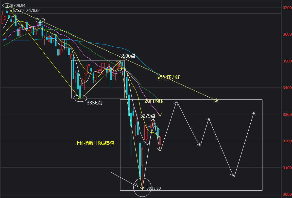 (9)对于上证指数的未来趋势推演仅供技术面分析的学习和参考。且上证指数的走势总结不适用于行业题材类,对于中证白酒,半导体科技,中证军工,新能源车,生物医药,基建,地产,有色金属等,我会在后续陆续做出判断分析。