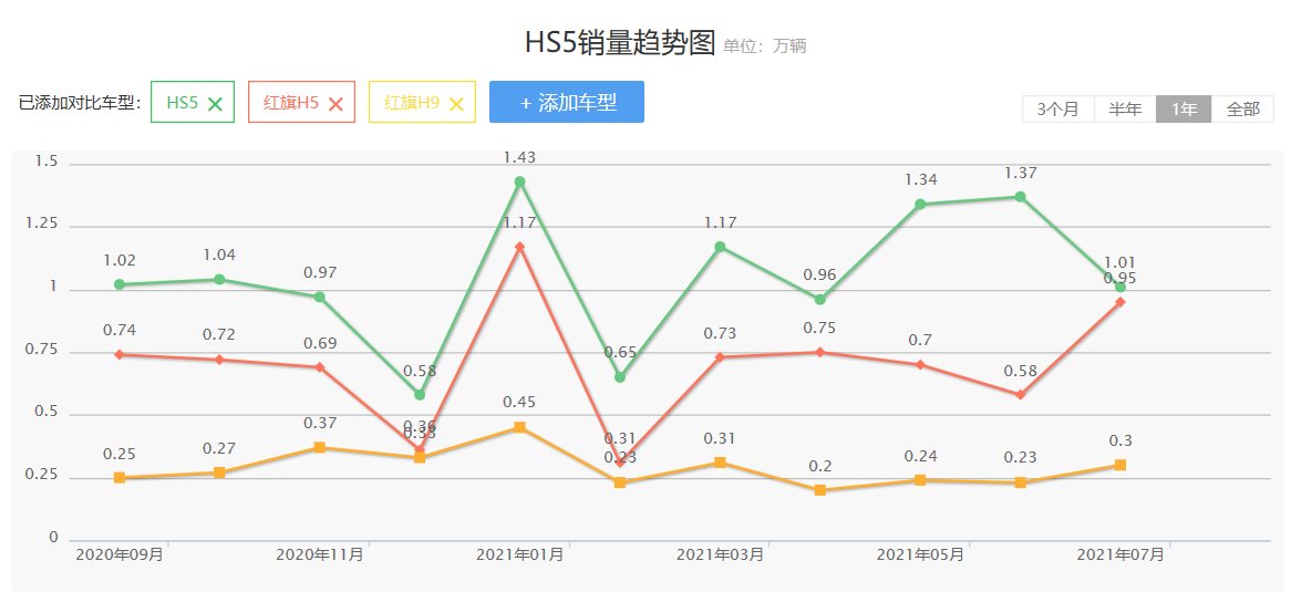 提到红旗车型,大家最先想到的可能是那威武霸气的H9,亦或是开启亲民之路的H5。但事实上,一直闷声发大财的中型SUV-红旗HS5,才是最应被提及的。自从在去年8月完成国产“豪车”首次破万壮举之后,HS5的日子可以说是越走越顺。特别是在今年,它更是经常稳定在月销万台的水平。