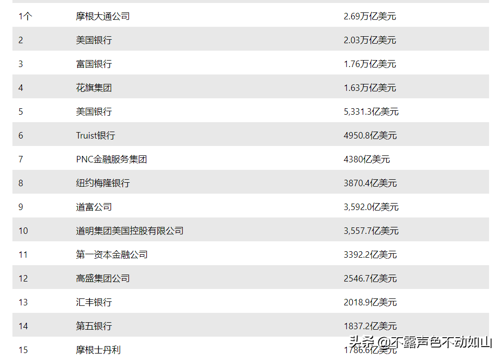 根据美联储的最新数据,这是美国资产规模最大的15家银行。