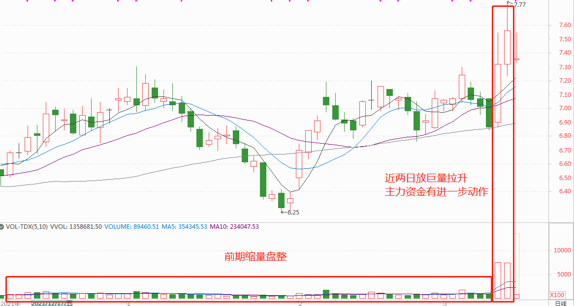 技术面:股价相比较于前期缩量盘整,近两日突然放巨量拉升,说明主力资金后续可能会有大动作。