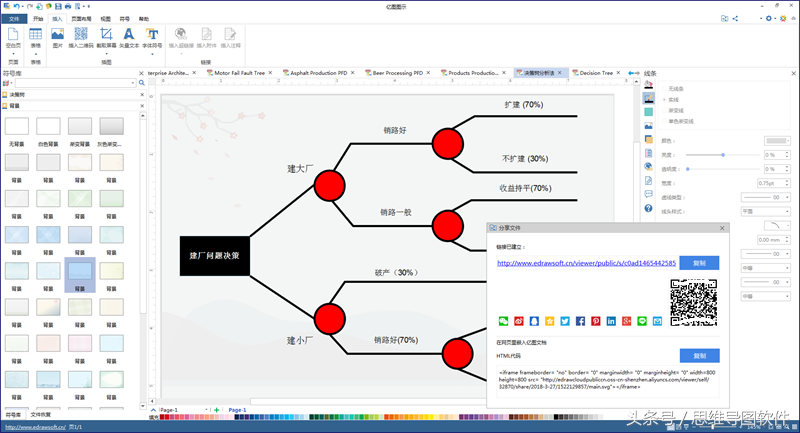 要想用好决策树分析法,首先当然得先掌握绘制决策树的技巧。虽然决策树看起来很简单,可是一旦问题稍微复杂些,需要做的决策选择就会增加,需要绘制的符号也相应增多,无形之中增加了时间成本。所以我们需要用一款能够帮助我们最大限度提高做图效率的绘图软件,而亿图图示正是我们需要的最佳得力助手。