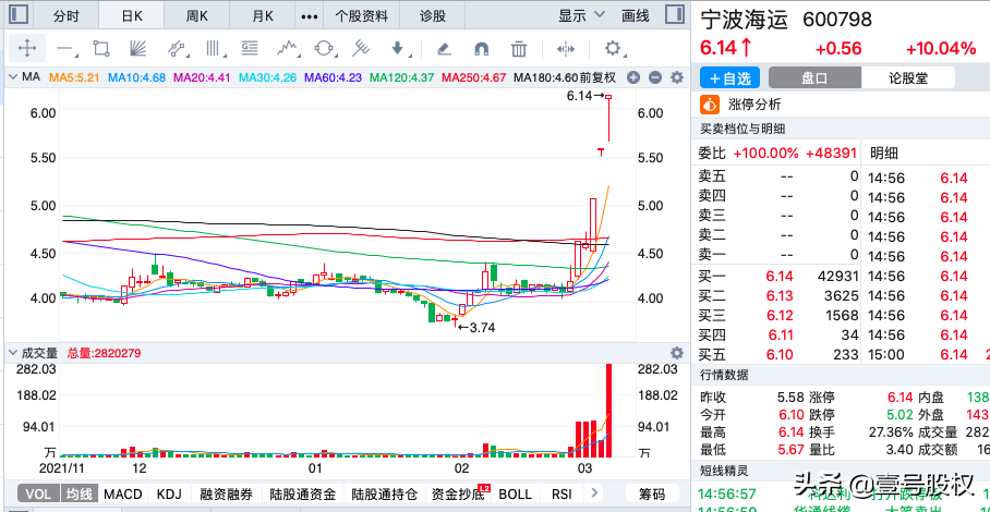 锦州港已本周涨幅61%,是A股涨幅最大的个股,已经连续6个涨停板,股价为何突然六连板? 其实都是和俄罗斯有关,过去一个星期突然兴起了一个概念板块,那就是“中俄贸易概念”,该板块过去一个星期涨幅20%,是A股最热门的概念板块,锦州港和俄罗斯是有贸易往来的。 2017年5月3日,“俄罗斯经满洲里至锦州港”的中俄集装箱海铁,联运列车首次抵达锦州港,标志着锦州港成为辽宁省亚欧路桥运输的又一端点。2018年4月19日,“俄罗斯伊尔库茨克—锦州港—广州”中俄集装箱铁海联运列车成功开通。 所以,锦州港和俄罗斯是有贸易往来的,俄乌冲突发生已经有半个月时间,欧美对俄罗斯的制裁更近一步,在这种情况下,俄罗斯对中国商品的需求增大,中俄贸易有望更进一步。这就是锦州港股价大涨的内在逻辑。 准油股份本周大涨61%,股价已经连续7个涨停板,比锦州港还多一个涨停板,股价已经涨了一倍,上涨的原因也是和俄罗斯有关。 准油股份所属的概念板块是“俄乌冲突概念”,这个概念的内核就是,俄乌冲突会导致俄罗斯的石油和天然气出口受阻,必然导致石油和天然气等能源价格的上涨,那么从事石油开采、勘探等领域工作的企业必然会受益。 准油股份的主要业务就是为石油、天然气开采企业提供油田动态监测和提高采收率技术服务。理论上是可以受益的。 合富中国是在2月16日才上市的次新股,目前已经连续13个涨停板,公司上市发行价为4.19元/股,现在股价已经涨到了18.9元/股,涨幅350%。 公司主营业务是体外诊断产品集约化业务、医疗产品流通及其它增值服务。属于医药商业领域。目前动态市盈率已经105倍了,而行业龙头上海医药和九州通的动态市盈率不到10倍。新股炒作的可能性比较大。 天顺股份也连续6个涨停板,股价突然大涨是和俄罗斯有关,得益于“中俄贸易概念”,和锦州港类似,公司在新疆乌鲁木齐,主要从事大宗货物和大件货物的第三方物流和供应链管理业务。 公司致力于服务丝绸之路经济带核心区建设,助力国际陆港区发展,推进中欧(亚)班列高质量开行,以多式联运中心集货平台开展国际货运班列运营,通过整合国内外资源,开行了乌鲁木齐至俄罗斯、意大利、阿塞拜疆、哈萨克斯坦、乌兹别克斯坦、伊朗、土耳其、格鲁吉亚、马拉等中欧、中亚国家的班列。 运载货物涵盖日用百货、服装鞋帽、机械设备、水暖建材、汽车零配件、疆内农产品等百余种类,而这些正是俄罗斯所需要的,欧美对俄罗斯进行制裁,对中国的商品需求度也将上升。这是中俄贸易概念突起的内在逻辑。 拓新药业本周收获了2个涨停板,周涨幅51%,股价上涨和艾滋病治疗有关,阿兹夫定是一种艾滋病毒逆转录酶抑制剂。说直白一点就是能够治疗艾滋病。 这和拓新药业有何关系呢?而拓新药业的子公司新乡制药股份有限公司是阿兹夫定原料药的生产企业。在这个信息的影响下股价涨了一波。 宁波海运本周收获了4个涨停板,股价大涨46%,股价上涨的原因也是和中俄贸易概念有关,公司主要业务是经营从北方至沿海、长江中下游沿线各电厂的电煤运输,马来西亚至国内的矿砂运输,印尼、俄罗斯等至国内电厂的进口煤炭运输等。 河化股份本周连续4个涨停板,股价大涨45%,公司主要业务是医药中间体的研发、生产与销售业务以及尿素委托加工销售业务。是广西重点化肥骨干企业和河池市目前唯一一家上市公司。股价大涨原因不详,公司层面没有消息,行业层面也无利好消息。 这是一只去年12月份上市的次新股,3月4日股价涨停板,公司主要从事药品、生物制品、医疗器械等产品的分销及零售业务,主要服务包括分销业务、“特门服务”药房业务、DTP业务、生殖医院业务以及药房传统业务。具有辅助生殖的概念,辅助生殖概念板块最近涨势不错。达嘉维康最近股价上涨也许和此有关。 德石股份是1月份上市的次新股,主营业务是从事石油钻井工程所使用的钻具产品、装备产品等专用设备的研发、生产、销售和租赁,以及提供石油钻井工程技术服务。具有中俄贸易概念以及俄乌冲突概念。和准油股份相似。 悦心健康本周连续3个涨停板,公司业务分为建材业务、医疗服务、养老服务、投资性房地产租赁等。 公司的主要业务是瓷砖,贡献了超过85%的营收,大健康贡献了7%左右的营收,具有辅助生殖的概念。公司在美国洛杉矶投资了日星人工生殖中心,在美国可提供合法的试管婴儿医疗服务。在国内,主要是与江西省宜春市妇幼保健院的合作项目,公司协助设备投入及引进人才。和涨幅第八名的达嘉维康都是属于辅助生殖概念范畴。 总结:本周A股涨幅最大的十只股票大多和中俄贸易和俄乌冲突有关,其内在逻辑是俄乌冲突导致石油和天然气价格飙升,这对石油开采及其上游是利好,比如准油股份和德石股份就属于石油开采领域的受益股。其次就是俄罗斯受到欧美更加严厉的制裁,那么俄罗斯对中国的商品需求度上升,这有利于中俄贸易的提升。 除了和俄罗斯有关的概念之外,还有一个就是辅助生殖,有2只股票是属于这个概念范畴的,自从去年放开三胎之后,从上到下都在积极推行和鼓励生育,生育意愿下降是工业化背景下现实,相比之下那些愿意生育,但是碰到了生育困难和障碍的群体更应该受到关注,辅助生殖在北京已经纳入医保范围了,这个概念板块未来是比较可观的。
