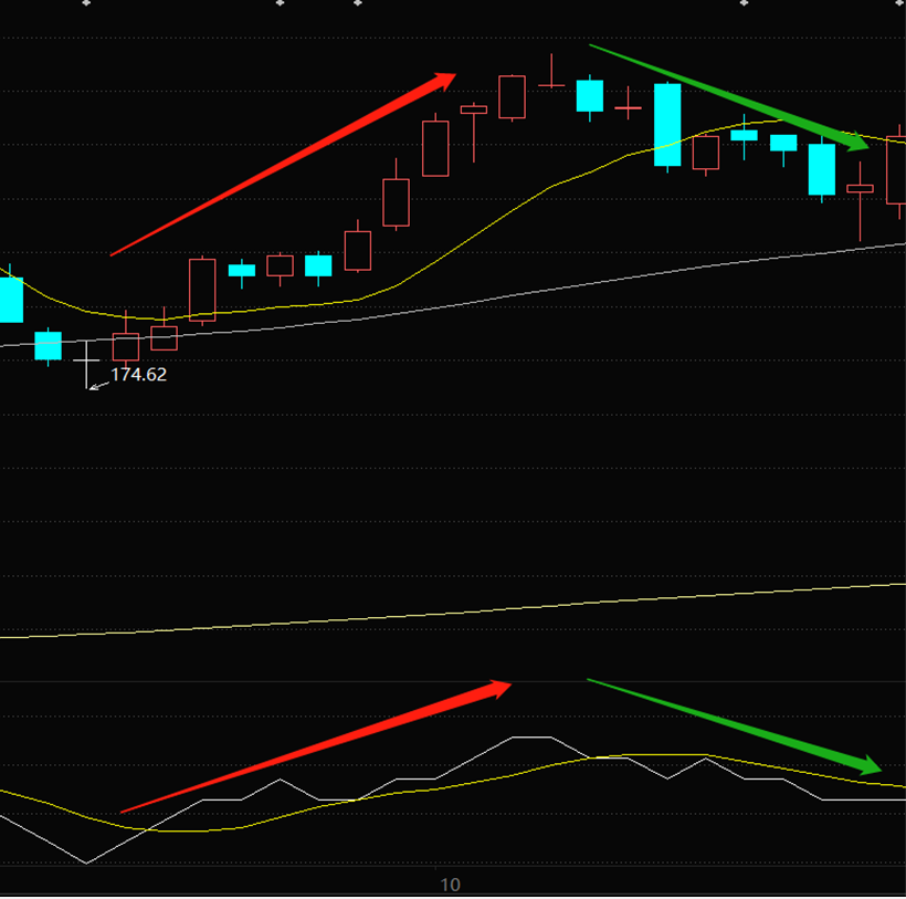 当这种走势出现时,说明短期处于超买状态,多空双方力量可能会扭转失衡。