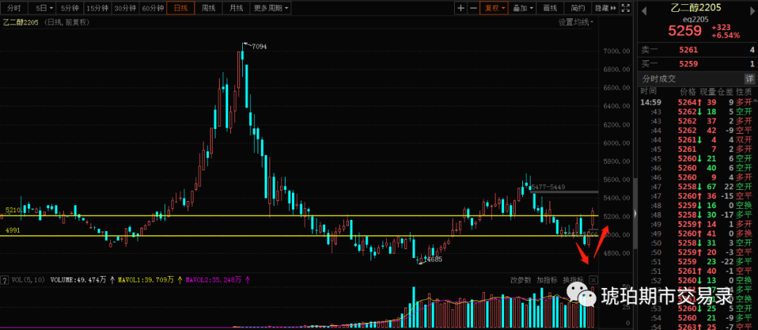 今天这么火爆的行情,把前几天日K破位的乙二醇、纯碱又拉了回来,回到了多头原来的多头趋势。