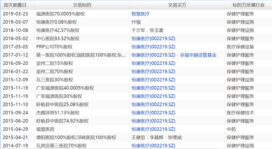 公开资料显示,2013年到2019年,恒康医疗集团先后将四川邛崃福利医院等数10家医院纳入麾下。