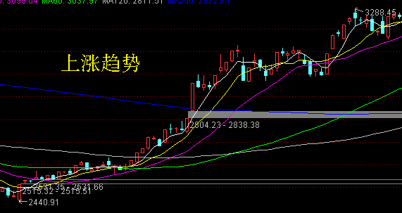如上图,上证指数经过大幅下跌之后在2440点止跌企稳,随后在开启了一浪超级反弹行情,2440点到2600点,随后再到2800点,再到3000点,最后到了3200点,一浪推高一浪,这就是股市的上涨趋势。