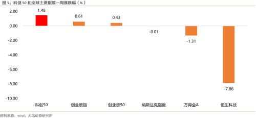 科创50在主要股指中表现居前。7月26日至8月6日,科创50指数在主要股指中涨幅居前,相比于前10交易日,涨幅1.48%。而从个股表现来看,机械设备、电子行业内部个股表现分化较大。