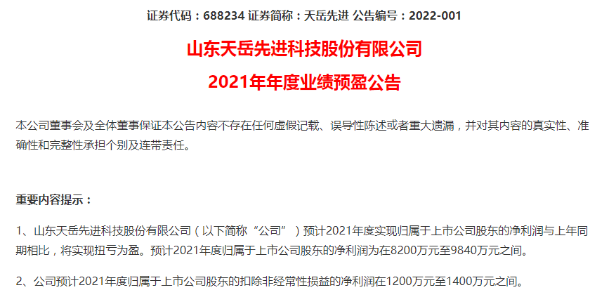 好消息是,1月28日,天岳先进宣布2021年度将实现扭亏为盈,预计当年净利润在8200万元至9840万元之间,但扣非后净利润在1200万元至1400万元之间。