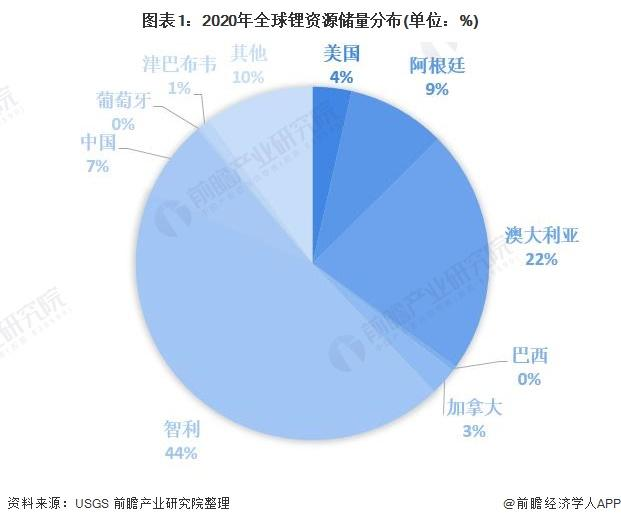 据悉,全球近80%锂资源产量集中在美洲四湖以及澳洲六矿,智利正处于全球锂资源储量最丰富的南美“锂三角”地带。据美国地质调查局(USGS)统计,2020年全球锂资源储量约为2100万吨锂金属当量(1吨金属锂=5.322吨碳酸锂),其中智利的锂资源储量为920万吨锂金属当量,以44%的份额位居全球第一。