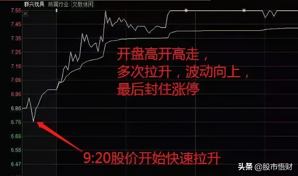 如下图所示,该股在9:20之前股价还是快速向下走的,9:20之后快速拉了上来,直至9:30正式开盘后,股价依然继续攀升。