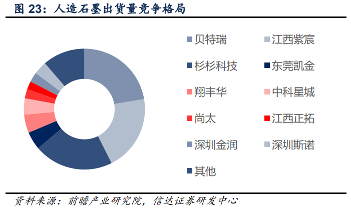 携手贝特瑞切入锂电负极材料领域 2021 年 9 月,贝特瑞新材料集团股份有限公司与福鞍控股有限公司签订《年产 10 万吨锂 电池负极材料前驱体和成品生产线项目合作协议》并合资成立四川瑞鞍新材料科技有限公司, 以合资公司为主体投资生产年产 10 万吨锂电池负极材料前驱体和成品生产线项目,福鞍控 股拟将其持有的合资公司全部股权转让给公司,由于福鞍控股尚未对合资公司出资,公司将 承接福鞍控股的出资义务,公司与福鞍控股签订了股权转让协议,转让价格为 1 元。 四川瑞鞍新材料科技有限公司计划建设“年产 10 万吨锂电池负极材料前驱体和成品生产线 项目”。合资公司注册资本 3 亿元人民币,公司认缴出资 1.47 亿元,占合资公司总股本的 49%。合作项目计划分两期建设,一期项目建设年产 5 万吨锂电池负极材料前驱体和成品生 产线,计划总投资额 9 亿元;二期项目规划新增年产 5 万吨锂电池负极材料前驱体和成品 生产线,具体进度视一期投产后市场情况再定。 人造石墨是动力电池负极主流材料,石墨化成本占比较高 负极材料在锂电池材料成本中占比约 10%。锂离子电池是指以嵌锂化合物为正负极材料的 二次电池,在充放电过程中,锂离子在两个电极间往返脱嵌和嵌入。相对于传统铅酸电池和 镍铬电池等,锂离子电池具有能量密度高、循环寿命长、充放电性能好、使用电压高、无记 忆效应、污染较小和安全性高等优势,同时相对于各类燃料电池、空气电池及超级电容电池,锂离子电池技术明显成熟。近年来随着工艺的成熟,价格逐渐下降,性价比优势突出。凭借 优异的电池性能、环保优势及价格优势,锂离子电池在电池行业所占市场份额持续提升。 锂离子电池在消费类电子产品电池中广泛应用,也是目前新能源汽车动力电池主流路线。锂 离子电池占新能源汽车成本的 40%以上,是最大的成本构成。锂离子电池的核心部件为电 芯,电芯主要由正极、负极、电解液和隔膜四大关键材料组成。正极材料、隔膜、电解液、 负极材料、其他分别占锂离子电池材料成本的比例约为 30%、25%、17%、10%和 18%。 锂电负极材料目前主流是石墨材料。锂离子电池的负极是由负极活性物质碳材料或非碳材料、 粘合剂和添加剂混合制成糊状胶合剂均匀涂抹在铜箔两侧,经干燥、滚压而成。负极材料是 锂离子电池储存锂的主体,使锂离子在充放电过程中嵌入与脱出。 石墨材料由于具备电子电导率高、锂离子扩散系数大、嵌锂容量高和嵌锂电位低等优点,且 石墨材料来源广泛、价格便宜,成为目前主流的锂离子电池负极材料。石墨材料分为天然石 墨、人造石墨和复合石墨等。 从我国负极材料消费结构来看,人造石墨消费比重最大,我国 人造石墨出货量达 79%。 负极材料一般分为碳系负极和非碳系负极,其中碳系负极可分为石墨、硬炭、软炭负极等, 石墨又可分为人造石墨、天然石墨、中间相炭微球;非碳系负极包括钛酸锂、锡类合金负极、 硅类合金负极等。 负极材料产业链:锂电池负极材料的上游,原材料根据产品种类不同而不同,天然石墨负极 材料的上游原料为天然石墨矿石,人造石墨负极材料的上游原料是针状焦、石油焦、沥青焦 等;锂电池负极材料的设备主要包括流化床、回转炉等。 锂电池负极材料的中游为锂电池负极材料的生产加工商,生产含不同种类的负极材料。 锂电池负极材料下游为锂电池行业,下游行业的产品最终应用于动力电池、3C 消费电池及 工业储能电池三大领域。下游行业对负极材料行业的发展具有较大的影响,其需求变化直接 影响到负极材料行业未来的发展状况。 目前,天然石墨是锂电池负极主要的原材料,主要的生产企业包括中国宝安、方大碳素等, 上游生产设备涉及多种设备的供应厂商数量较多,但企业规模普遍都较小,很少有上市企业;在中游,贝特瑞、杉杉股份和璞泰来是锂电池负极材料行业的龙头企业;下游锂电池行业的 企业中,宁德时代在动力电池、3C 消费电池和储能电池领域均有布局,市场份额较大。 天然石墨负极材料是采用天然鳞片晶质石墨,经过粉碎、球化、分级、纯化、表面等工序处 理制成,其高结晶度是天然形成的。由于天然鳞片晶质石墨表面活性点较高,不能直接作为 负极材料使用,需要进行表面改性处理。 人造石墨负极材料是将石油焦、针状焦、沥青焦等在一定温度下煅烧,再经粉碎、分级、高 温石墨化制成,其高结晶度是通过高温石墨化形成的。人造石墨负极材料成本构成中,直接 材料占比 30%,加工费占比最高,达到 64%,加工费中石墨化占比最高,达到 66%,其次 是粉碎加工占比 21%,造粒占比 9%。 目前主流负极产品有天然石墨与人造石墨两大类,人造石墨主要用于大容量的车用动力电池 和倍率电池以及中高端电子产品锂离子电池,天然石墨主要用于小型锂离子电池和一般用途 的电子产品锂离子电池。 人造石墨未来几年仍将是动力电池负极材料主流原材料。石墨类材料未来几年内仍具备技 术、价格和成熟配套优势。石墨作为负极材料未来几年内仍将是主流,对锂离子电池性能及安全性起着非常重要的作用。目前锂离子电池的发展方向是高容量、高倍率、高安全,实现 高容量高倍率的主要途径是开发以人造石墨为主要原材料的高性能锂离子电池负极材料。 新能源汽车渗透率提升驱动负极材料需