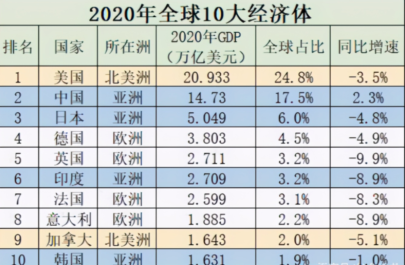 不过,因疫情在全球肆虐,这一年,世界的GDP总量为84.706万亿美元,比2019年少了3万亿美元,这相当于2019年印度一整年的GDP总量。