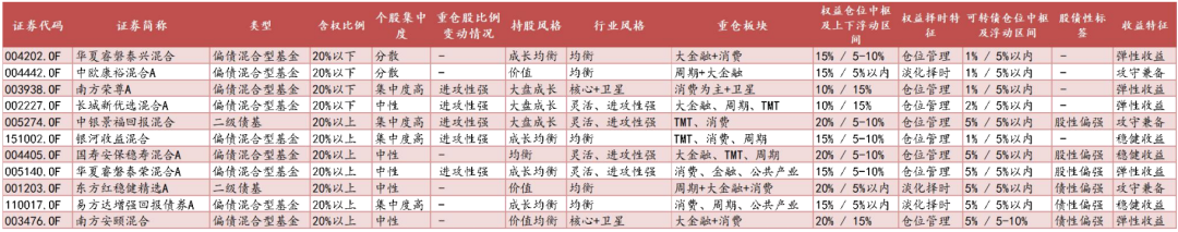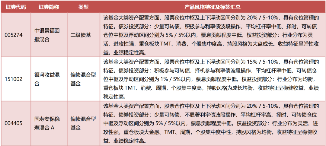 表 5:权益+可转债平均仓位区间(20-45%)优选“固收+”的产品风格特征及标签汇总