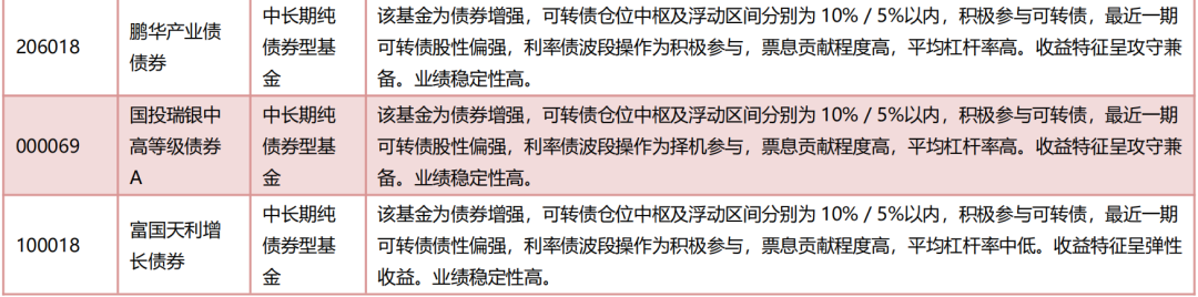 表 2:权益+可转债平均仓位区间(0-20%)的优选“固收+”