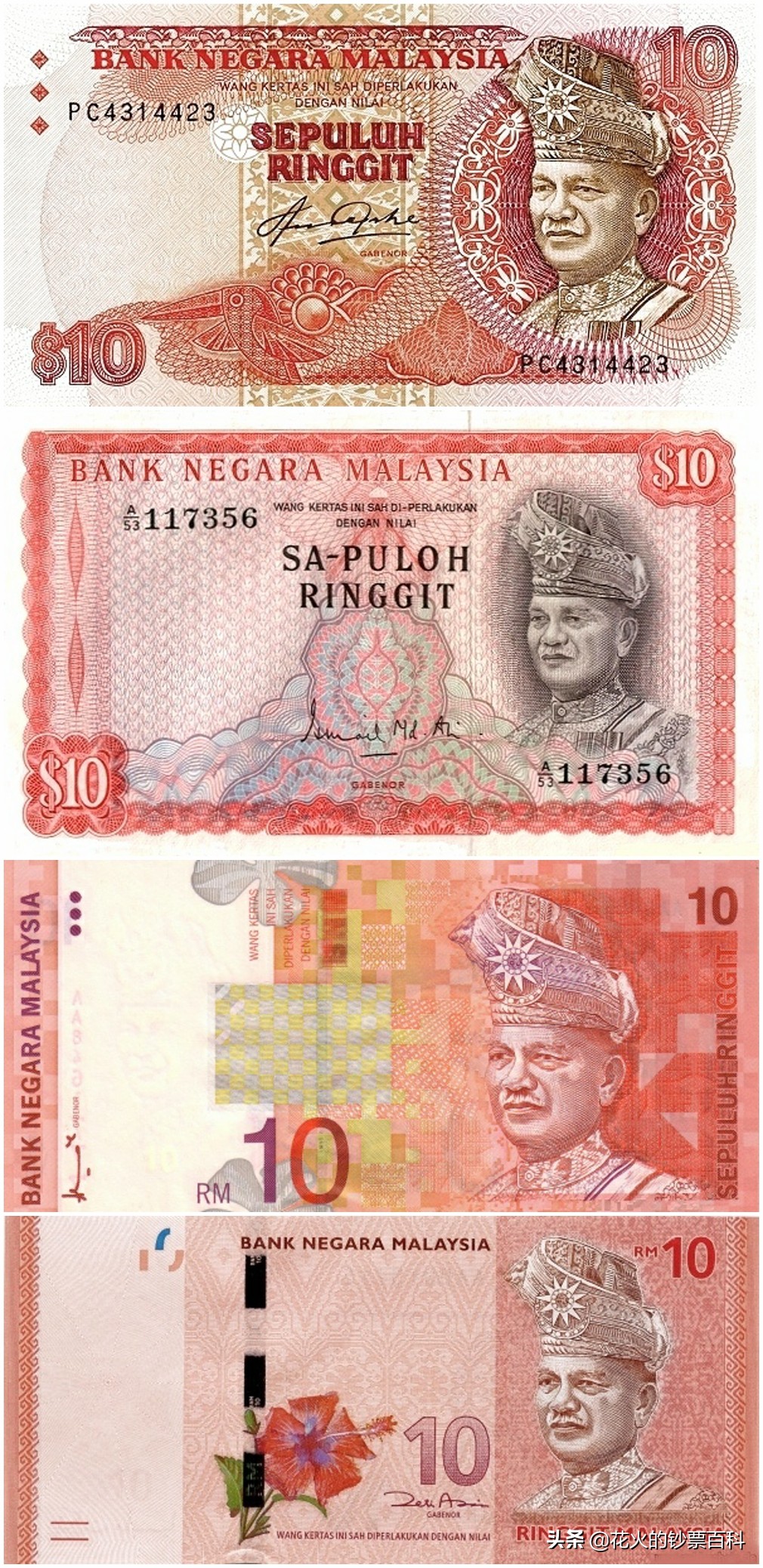 简单聊聊马来西亚这个国家,马来西亚(马来语:Malaysia;英语:Malaysia;简称大马)是一个位于东南亚的国家,由前马来亚联合邦、沙巴、砂拉越及新加坡于1963年9月16日所组成的国家,新加坡后来在1965年8月9日从联邦中被除名,并独立建国。 独立建国之前,曾是英国的殖民地。 马来西亚隔南中国海分为东西两大部分:西半部位于马来半岛,常称为“西马”,北接泰国;东半部常被称为“东马”,位于婆罗洲岛上的北部,西马的人口密集度比东马高许多,也是首都和联邦政府所在地。首都位于吉隆坡,是马来西亚人口最密集和最繁荣的地区,联邦政府所在地则位于布城。截至2019年,全国人口超过3258万。 马来西亚实行君主立宪联邦制,沿袭大英帝国的政治传统。马来西亚一共有13个州,其中4个民主州,9个世袭州,而国家的最高元首就从这九个世袭州中选举产生,江山轮流坐,你5年,我5年,很是独特。和其他的国家最高领导人叫总统或者首相不同,马来西亚的最高领导人称之为:“最高元首”。 马来西亚最高行政机构为内阁,由总理领导。“最高元首”就相当于英国女王,政府国家事务,是由总理是管事的,有实权。 马来西亚的法定货币是马来西亚林吉特(马来语:Ringgit Malaysia;英语:Malaysian Ringgit),中文也有叫做“令吉”“马币”,货币符号为RM,由马来西亚国家银行发行。是由德国G&D在马来西亚的印钞厂印制的。 自1967年起至今,马来西亚国家银行共发行过四个版本的钞票。这些钞票相同的地方就是正面采用同一个人物肖像,这个人物就是端古·阿卜杜勒·拉赫曼(端姑阿都拉曼)(1895年-1960年),他是马来西亚独立以来的第一任最高元首(1957年-1960年)。 我手上这一套的纸币是马来西亚第四版的钞票,除了50林吉特是在2009年7月15日国家独立五十周年发行外,其余钞票是2012年7月16日开始发行流通的。一共有6个面额,两种材质。其中最小面额的1和5林吉特是塑料钞,其余10、20、50和100面额为纸质钞票。 目前汇率100林吉特约为164人民币。 好了,接下来就来看看这套钞票的票面设计。 马来西亚钞票的色调上是大红大紫的。色彩鲜艳,饱和度也比较高,辨识度也很高。 分别是蓝,绿,红,橙,蓝绿,紫。 钞票正面除了第一人最高元首之外,还有一朵鲜艳的大红花,而且每个面额的大红花都一模一样。 大红花是马来西亚的国花,又称为红木槿,于1960年7月28日被选为国花。大红花意义是红色代表勇敢,强大的生命力与快速的繁衍能力,象征了马来西亚国家与国民生生不息地茁壮成长。五个花瓣代表马来西亚的“国家原则”(Rukun Negara),即“信奉上苍、忠于君国、维护宪法、尊崇法治、培养德行”。 马来西亚的令吉,无论是纸钞或硬币上都印有大红花的图案。 正面没啥可说的,我们一一看一下背面。第四系列的马来西亚纸币以“与众不同的马来西亚”为主题,在工艺美术,自然奇观,动植物,经济和传统方面具有传统表现形式。这些元素独特地定义了该国的多元文化。 1林吉特 1林吉特背面图案是月亮风筝(Wau Bulan),这是一种马来西亚传统的风筝,由竹子和纸手工制成,造型奇特,月亮风筝因形状如月牙而得名。 在东南亚,大马人也许是最痴迷风筝的民族——他们把美丽的风筝作为装饰品挂在自家墙上;把风筝作为马来西亚航空公司的标志、胸口戴的徽章;并发行风筝为主题的邮票。 5林吉特 5林吉特钞票背面图案印有马来犀鸟(学名:Buceros rhinoceros),它是世界上最大,最宏伟的犀鸟物种之一。雄鸟的眼睛呈橙色或红色,雌鸟的眼睛则是白色的。它们的喙及盔主要是白色及橙色的。它们的下身及尾巴呈白色。 马来犀鸟在砂拉越州视为力量和勇气的象征,在砂拉越的习俗和传统仪式中扮演着重要角色,砂拉越州的州徽就是一只犀鸟。它是马来西亚的国鸟及砂拉越的州鸟。 10林吉特 10林吉特钞票背面选择的是世界上最大的一种花-大王花(学名:Rafflesia),旨在表现马来西亚郁郁葱葱的热带丛林的物种多样性。 钞票上这个花是于2003年在霹雳州的皇家贝卢姆森林保护区中首次发现,并以霹雳苏丹苏丹阿斯兰·沙阿(Sulan Aslan Shah)的名字命名。 这个花又称为莱佛士花,尸花,其直径可达1.4米之长。大花草开花时奇臭无比,发出腐肉味的臭气,靠吸引厕蝇与甲虫为其传粉。 20林吉特 20林吉特钞票背面是印有马来西亚海域特有的两种最著名的海龟物种:玳瑁(Eretmochelys imbricata)和棱皮龟(Dermochelys coriacea))。旨在表现马来西亚热带水域丰富多彩的海洋生物。 全球共有7种海龟,其中有四种海龟 - 棱皮龟 (Leatherback)、绿海龟 (Green)、玳瑁海龟 (Hawksbill)、太平洋丽龟 (Olive Ridley) - 选择在马来西亚产卵, 每年的4月到9月都有不少海龟前来繁殖产卵。 去马来西亚旅游,时间合适不妨去海龟岛看看海龟下蛋。 50林吉特 50林吉特钞票是于2009年发行的,票面设计与2007年发行的国家独立50周年纪念钞一致,但与第四套钞票主题略不一致。 钞票背面设计主题是迈向一个经济发展蓬勃的时代。 图案分为三个部分,左边是油棕树,油棕树最早种植于西非及赤道非洲,19世纪70年代初期作为观赏植物开始在马来西亚种植。20世纪20年代马来西亚开始企业化种植并开始棕油轧制。目前,马来西亚是世界第二大棕榈油生产国,仅次于印度尼西亚,其棕榈油产量达到2000万吨,占全世界总产的30%左右。马来西亚棕榈树的种植面积约占全国耕地的一半以上,超过500万公顷,是马来西亚