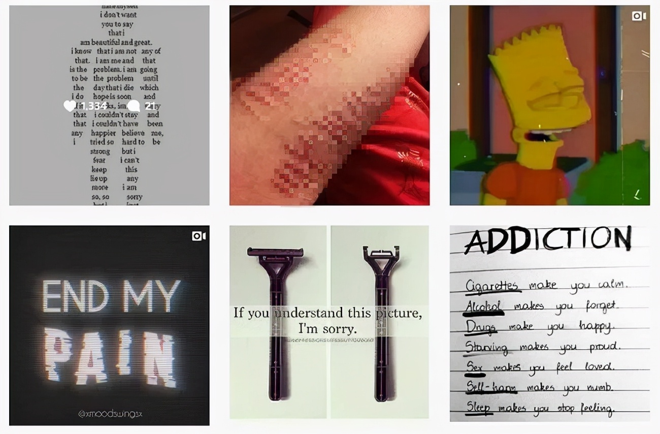 只要关注了这些博主,Ins 就会开始进一步推送和自残相关的博主。。。