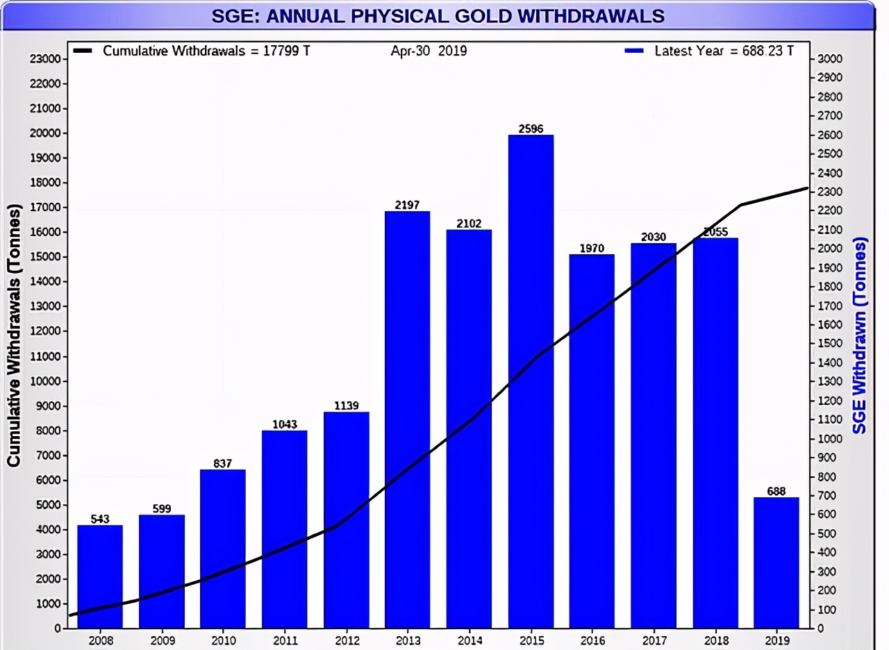 值得一提的是,几乎所有中国企业开采的和进口黄金以及回收的废金都会进入了上海黄金交易所(SGE)金库,并进行交易,由于SGE是中国国内黄金市场的核心,因此,中国市场几乎所有黄金供应都流经SGE金库网络,而对SGE黄金提取的分析将为中国黄金市场的真实规模和中国黄金需求的真实规模提供了一个现实的窗口。