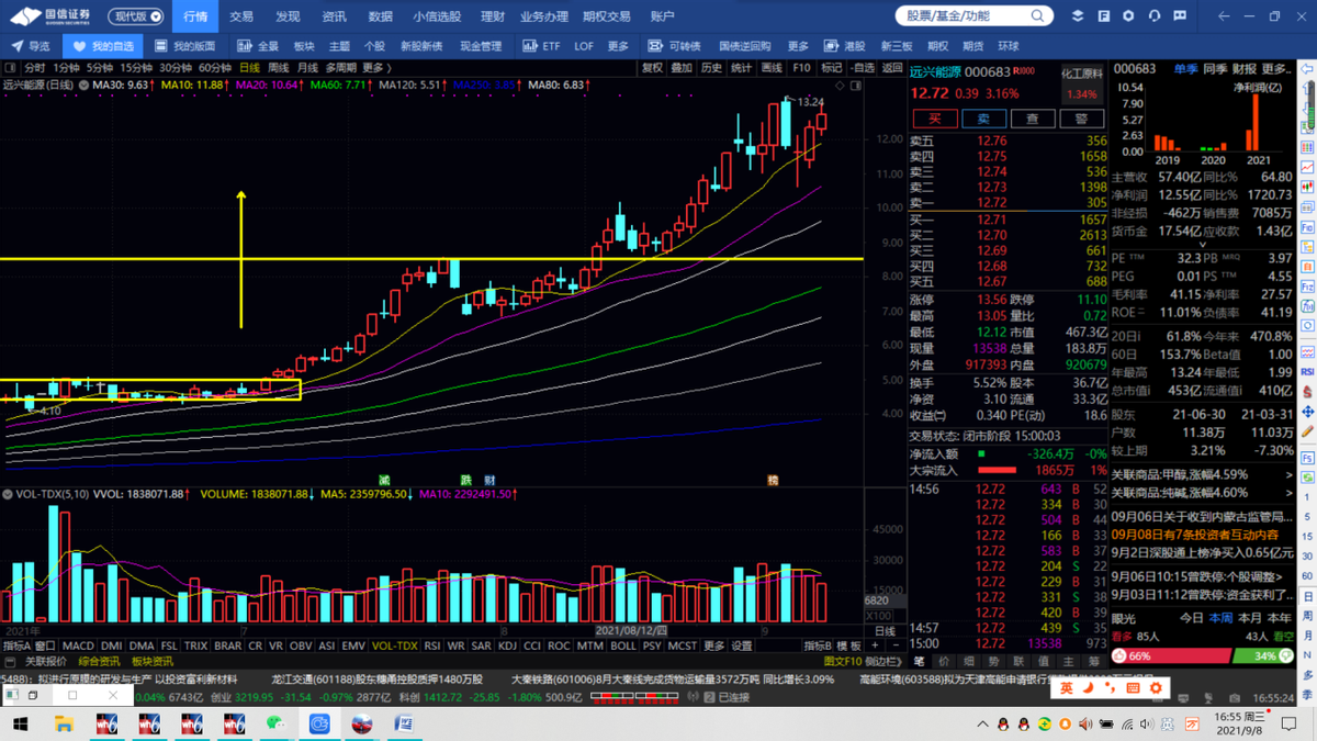 纯碱龙头000683远兴能源继续走强创新高然后回落有再创新高预期,30日均线之上此股是健康的,对于波段投资者高度注意回调压力,设好止盈也是可以的,具有明显的世界级垄断地位,纯碱是一种用途很广泛的化工原材料,产品在涨价周期之中,并且是天然纯碱又有新矿产资源要增加,期货纯碱上周走势还是偏强。远兴能源打算第一步先看到不复权的历史高位,大胆假设小心求证,做对了可以坚持,做错了当然应当在发现错的时候要即时纠正不能让错误扩大。做股票一定要理性不要有赌的思想,心平气和的有风控思想的分仓做才轻松又能赚钱且持续盈利,千万不能急,因为财不入急门一定要切记再切记。看能不能涨幅超预期。纯碱涨价周期有可能在明年底之前难以结束。