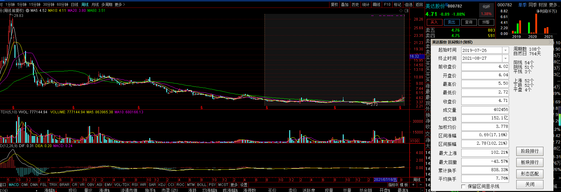 长期横盘3年,加权均价4.17元,净利润同比增长187%,动态市盈率15.5倍