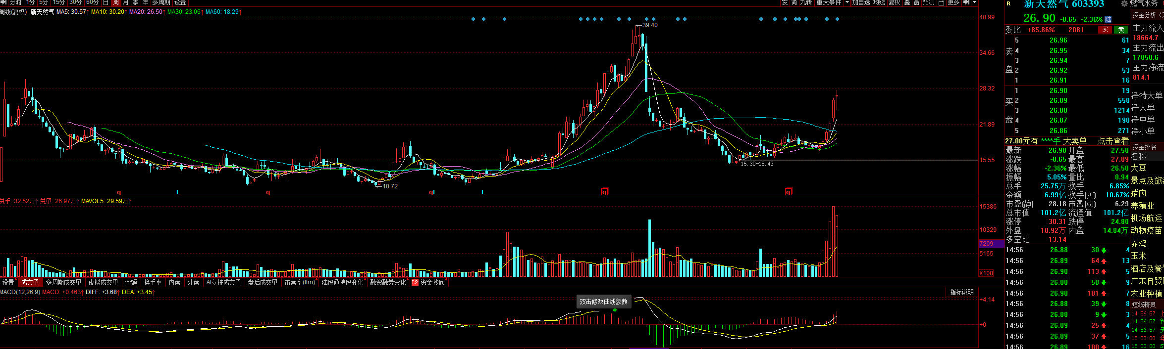 从日K线图上看,今日放量站上5日线,周线看,连续两周上涨,MACD金叉,目前作为天然气板块炒作龙头后市能走多远呢?
