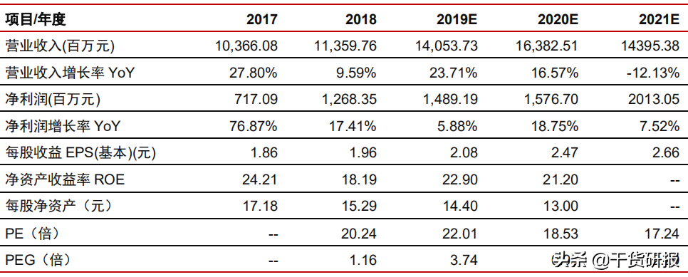 盈利预测、估值及投资评级。公司是国内连接器领域垂直整合能力较强的龙头企业, 在消费电子领域紧跟大客户创新,将逐步导入新品,我们预计中短期消费电子将支撑其业绩增长。汽车、通讯领域长线布局,助力公司中长期稳健增长。维持公司 2019/2020/2021 年 EPS 预测 0.87/1.06/1.27 元,维持“买入”评级。