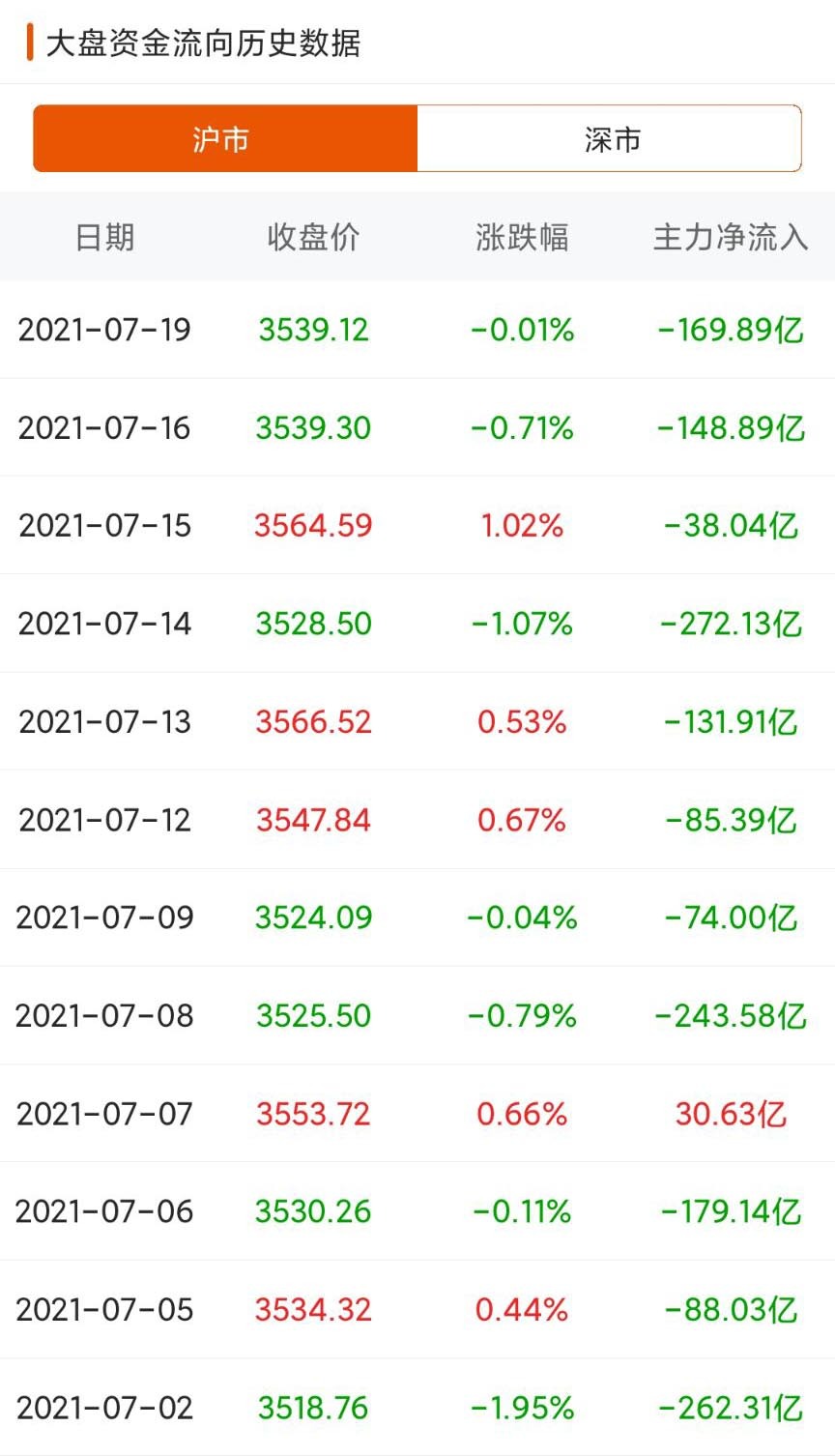 好了明白了这些之后,我们就来看一下近期主力资金的东西如何?下图是近期主力资金的流向,数据显示,沪深两市在7月7日小幅流入之后到今天为止均是保持了流出的状态,已经连续8个交易日净流出了,其中14日流出530多亿,为近期之最,这两天流出的量也不算少,那么由此看来,主力对未来走势还是比较谨慎的。个人分析这可能是基于近期外部环境带来的压力,比如说疫情的反复,流动性的问题等等,这些不确定性的增强使得主力不敢放手一搏。