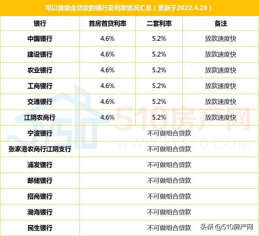 在上面的表格里可以发现,江阴当前多数银行都实行了首房首贷4.6%的利率,二套利率5.2%。