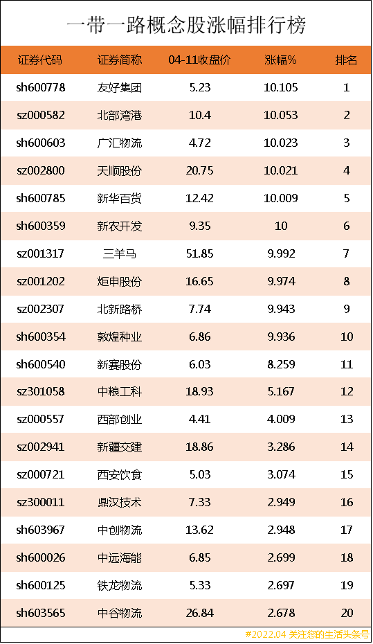 「泊位公司」一路一带概念股有哪些(一带一路概念股涨幅排行榜详解)