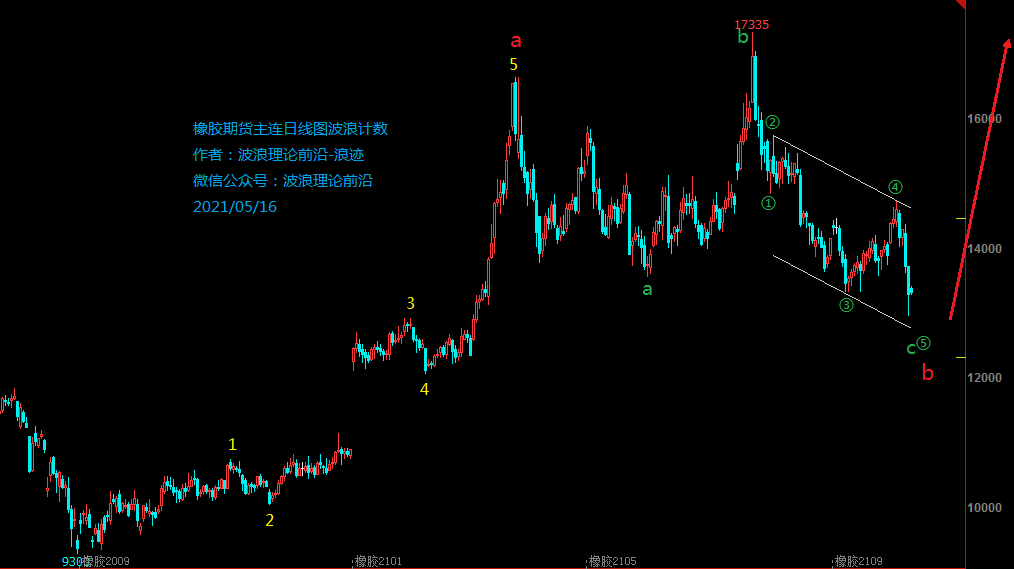当前,橡胶的调整料已接近尾声,见波浪理论图表分析: